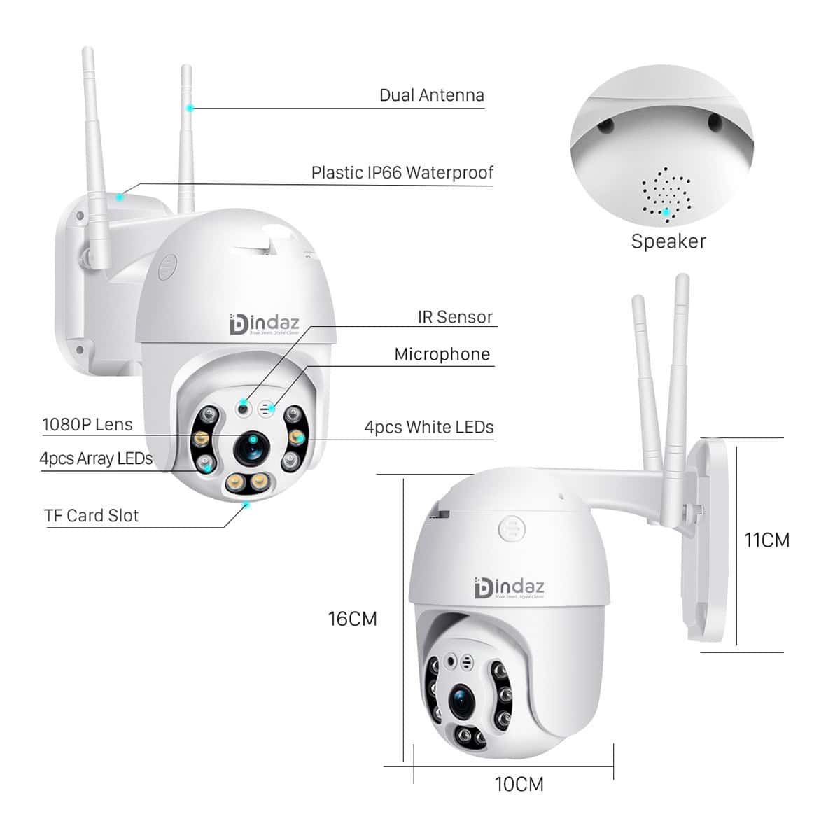 | Main Features | AI Human Tracking Detection, Electronic Shutter, IP66 Waterproof, Night Vision, Pan-Tilt, TF Card, Two-way Audio, WIFI Network |